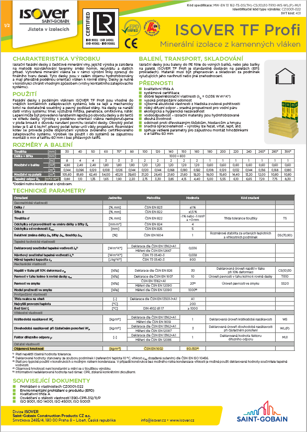 Tato tvrzení dokládají níže zobrazené technické listy.